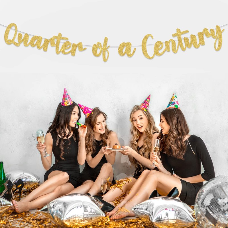 - Happy 25th Birthday: Quarter of a Century banner is an eye-catching addition for celebrating women and men 25th birthday.