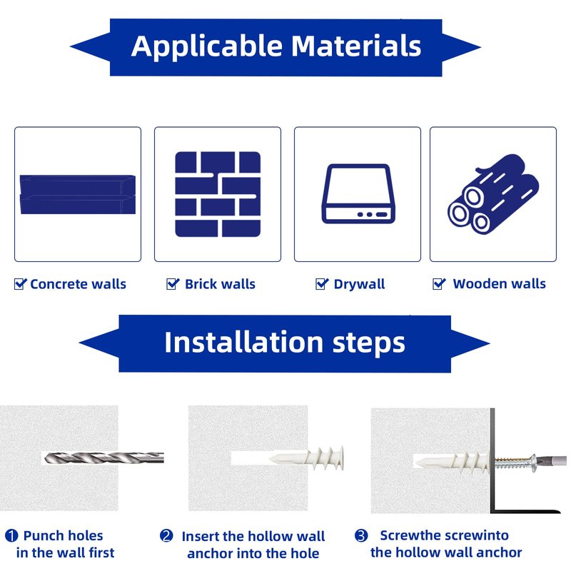 - 【HIGH QUALITY】Drywall anchors self drilling hollow wall anchors made from nylon plastic, screws made from zinc steel, can be used outdoors or in wet environments.