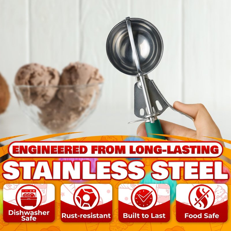 - Thoughtful Gift: Surprise a baking enthusiast with our ice cream scoops. Its clever design ensures that our heavy duty ice cream scoop dishwasher safe will be a helpful tool for all cooking needs