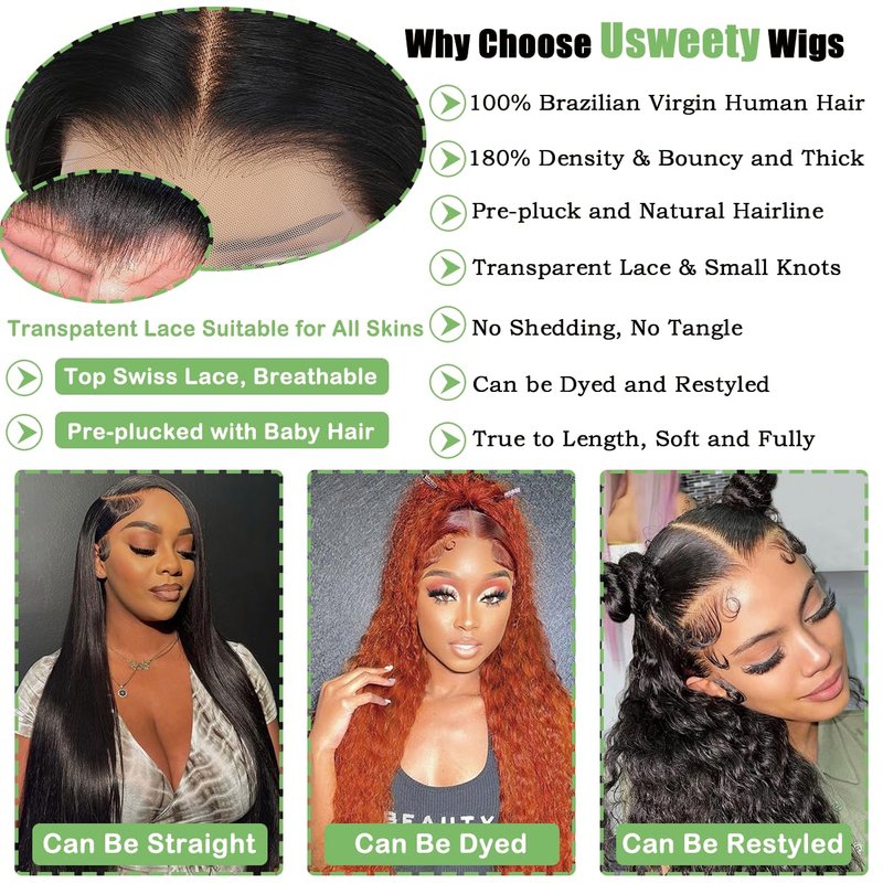 - 【13x4 Lace Front Wigs Human Hair Material】100% Unprocessed Grade Brazilian Virgin Human Hair 180% Density Lace Front Wigs, Cut from Healthy Young Female Head Directly, Natural and Healthy,Full and Thick,Smooth and Silky.