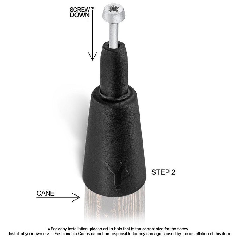 - Please drill the correct whole size for proper installation. This DIY item is designed to enhance walking sticks and canes, but improper installation may damage your staff. Use caution and enjoy improved performance.