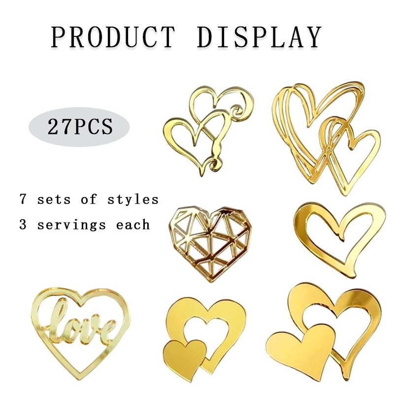 - Package: You will receive 27 pcs acrylic heart cake topper with 9 types of different minimalist heart patterns in gold, they will make your cake more exquisite