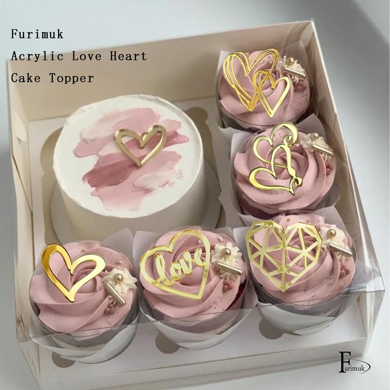 27 Pcs Love Heart Cupcake Toppers Acrylic Cake Topper Minimalist Gold Cake Decorations for Valentine's Day Anniversary Engagement Birthday Wedding Party Supplies