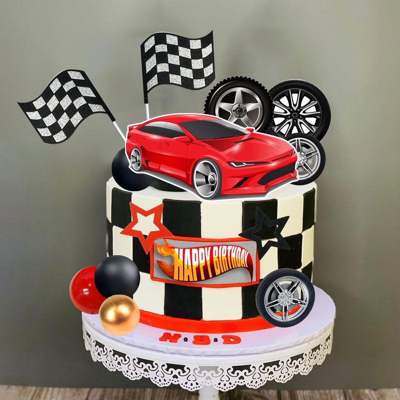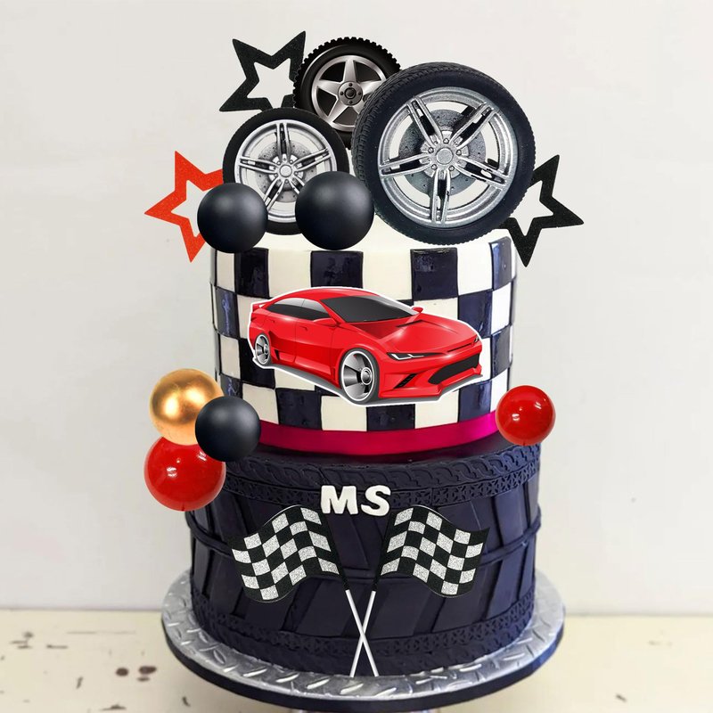- Design: The racing cake toppers is designed by the elements of car and wheel, which can create atmosphere. Perfect for your racing car theme birthday party!