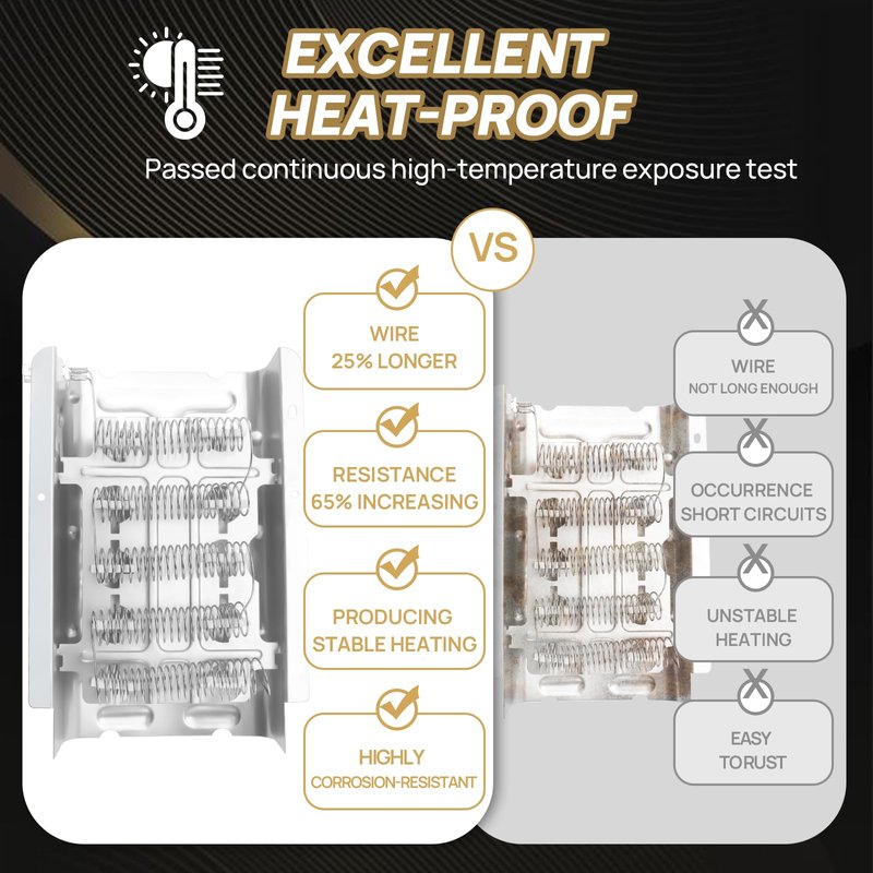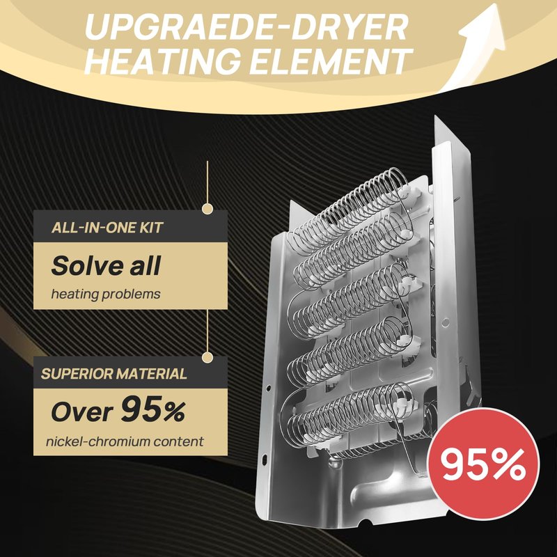 - 【HIGH QUALITY & EASY REPAIR】: Dryer replacement part kit are made from high-quality material with 90% nickel-chromium content, which high-temperature tested by the manufacturer and meets OEM standards! Our 279838 heating element wire is 25% longer than other dryer wires, increasing resistance by 65% can capable of stable and continuous heating. Easy to fixes many dryer problems such as no heat or not enough heat, takes too long to dry clothes, shuts off too soon, and timer not advance etc. Easy to install, saves your time and money from expensive repairs. Please Unplug power to the dryer before installation