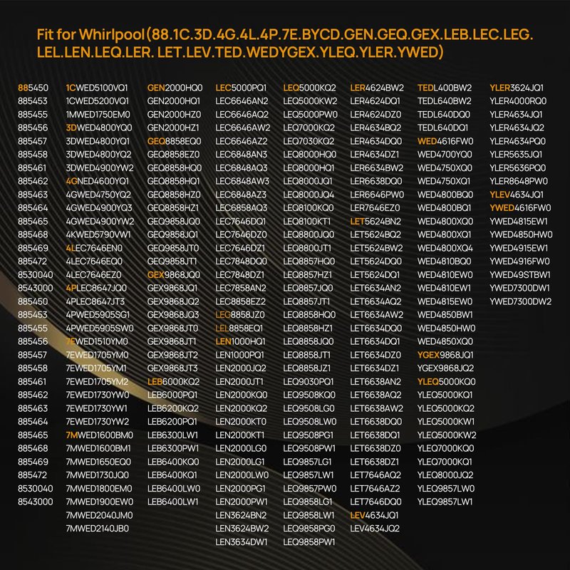 Compatible with Whirlpool, Kenmore etc.