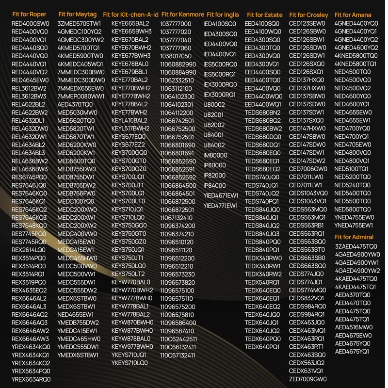 - >>279838 Dryer Heating Element Parts Compatible with whirlpool kenmore roper amana maytag bravos estate cabrio crosley admiral inglis magic chef jenn-air dryers and electric dryers. Fit for Whirlpool Dryer Heating Element WED4815EW1 Kenmore 500 600 70 80 Series Model 110 Maytag MEDC200XW3 Roper RED4440VQ1 Amana NED4600YQ1 Admiral 5400W 240V AP3094254. (Any uncertainty about models compatibility or product quality welcome to contact us, we're 24 hours online to help)