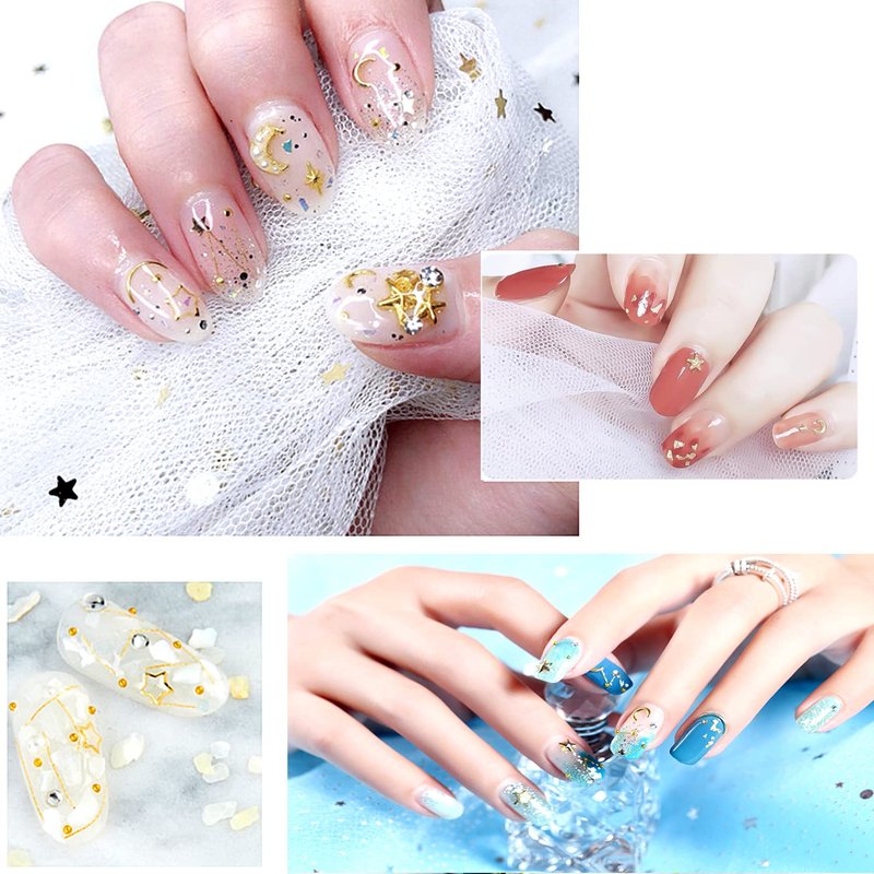 - 【Mixed Design】Fashionable gold nail art design, mixed-shapes nail decoration, (moon, star, circle, stick, shell, etc) you can decorate nail glitter, nail water transfer decals, nail foils, etc. You can easily find the gold studs you want to create