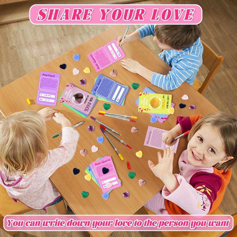 - Unique Stone Science Cards: The Valentine's Day cards come in 7 designs, each with a description of the stone printed on the back, allowing kids to learn and easily identify each gemstone. You can write down your message and the name of the person you want to give it to, and then write your own signature.