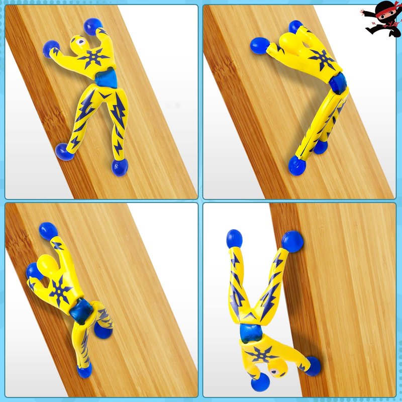 - SUPER QUALITY. Our wall climbers stress relief tricky toys are super sticky and stretchy, could stick to many surfaces and objects. Throw the ninja to the wall, windows or tables, it will turn over like spiderman. A good chance to practise your handwork ability. Kids will enjoy playing with the wall climbing men.