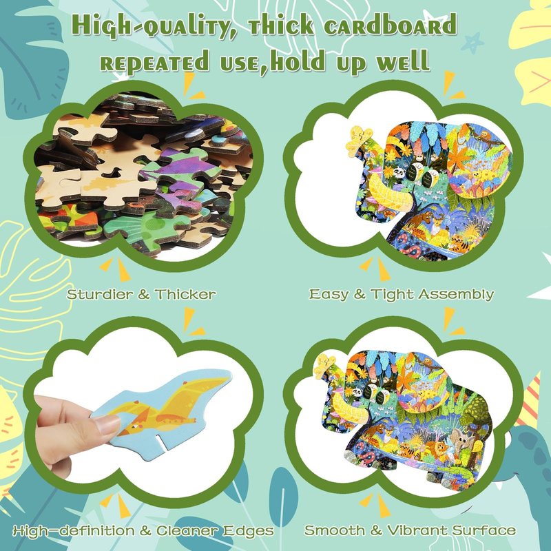 - [Elephant Shaped Puzzle with 3D Tiger and Elk] This 287 piece elephant-shaped puzzle features vibrant illustrations of tropical rainforest animals, including 3D stand-up tiger and elk figures. Perfect for kids puzzles ages 5-8, it sparks imaginations while improving fine motor skills, concentration, and problem-solving abilities.