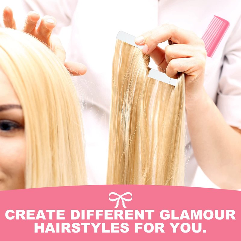 - Package received: you will receive 24 sheets hair extension with tapes and 2 pink comb metal tails, 12 small pieces on each hair extension, a total of 288 pieces, a sufficient number to meet your daily need