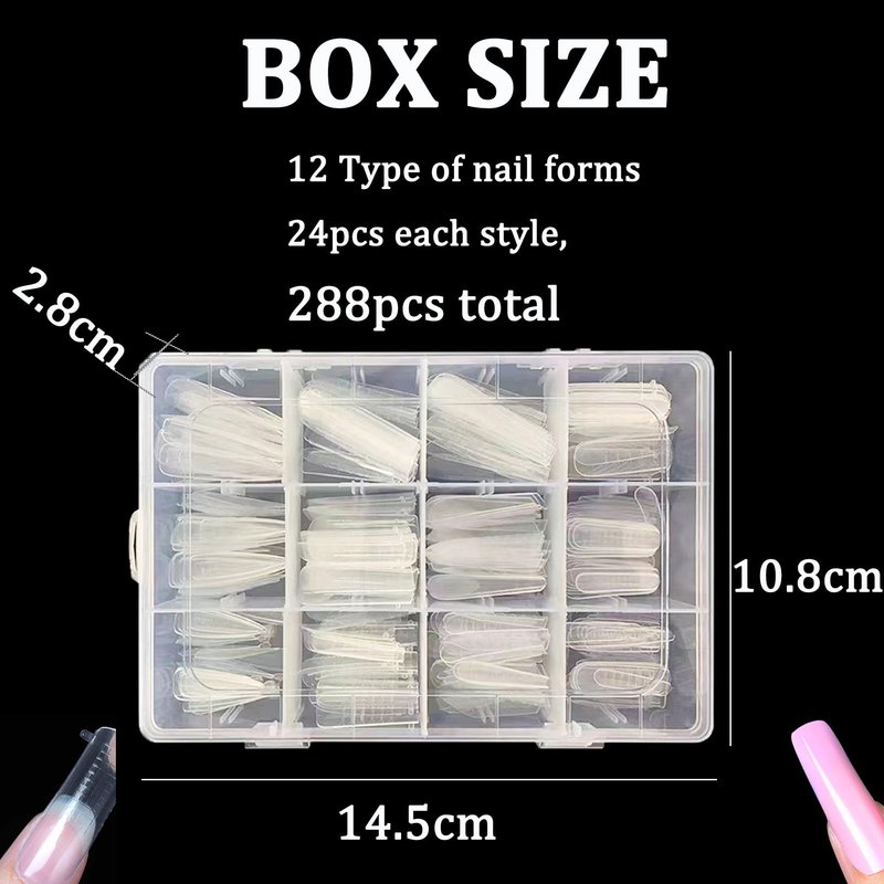 288PCS Dual Forms for Polygel Full Cover False Nail Tips with 12 Sizes Scale for Manicure Nail Art Design Salon