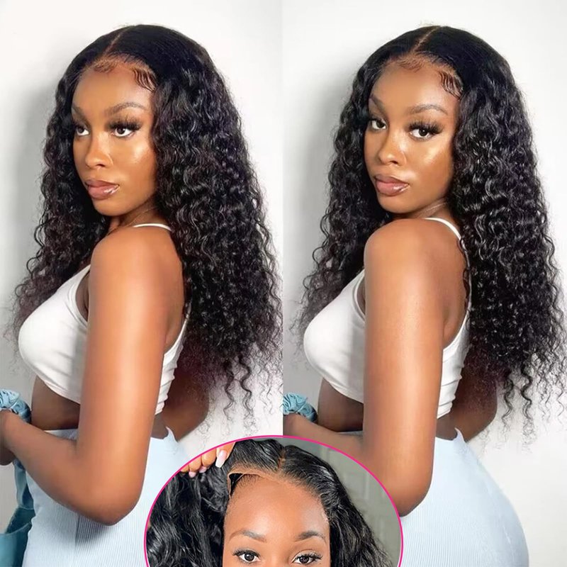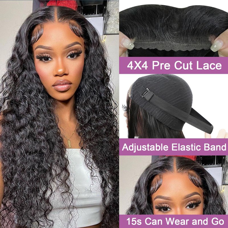 28Inch Glueless Wigs Human Hair Pre Cut For Beginners 180% Density No Glue 4X4 Closure Wigs Human Hair Brazilian Virgin Deep Wave Lace Front Wigs Human Hair (28Inch)