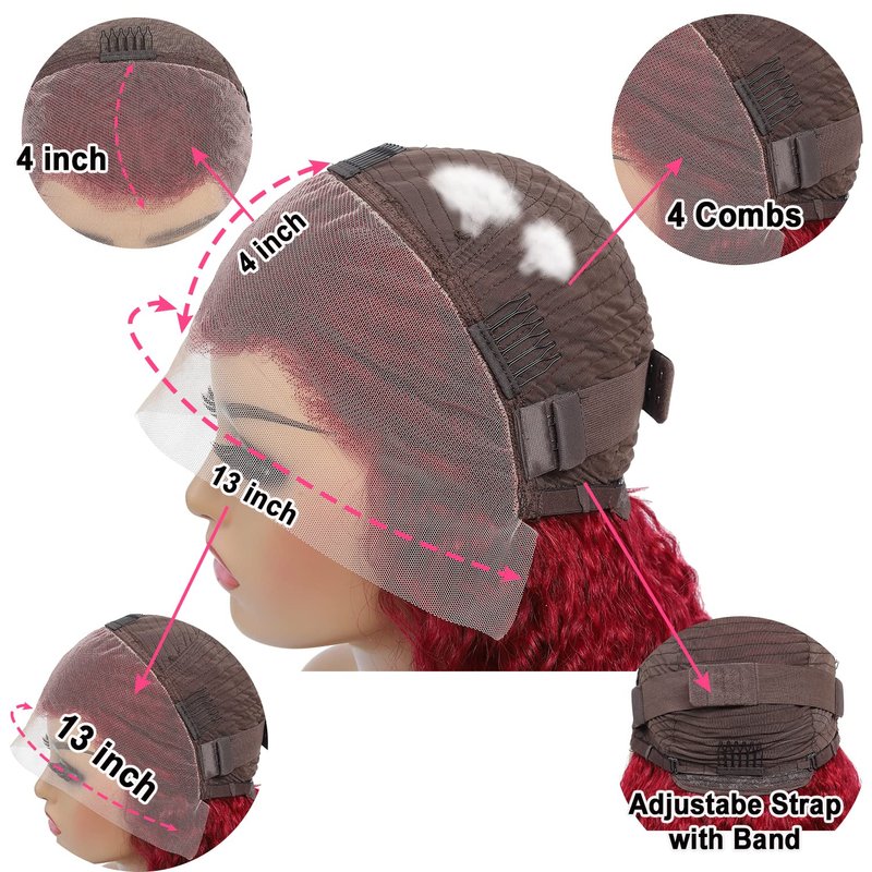 - Color: 13x4 Burgundy Deep Wave Wig