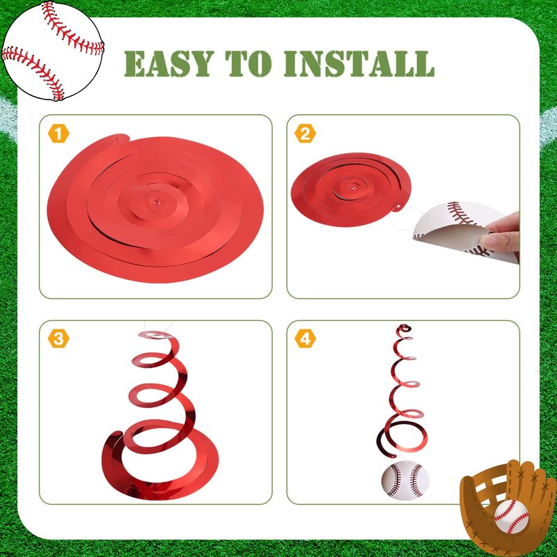 - Size: HAPPY BIRTHDAY banners 3m/9.8ft, baseball banners 3m/9.8ft, hanging swirl baseball cutouts 1m/36in, spiral streamers 0.7m/27.5inch; Add a festive touch to your baseball themed party with these vibrant baseball hanging decorations;