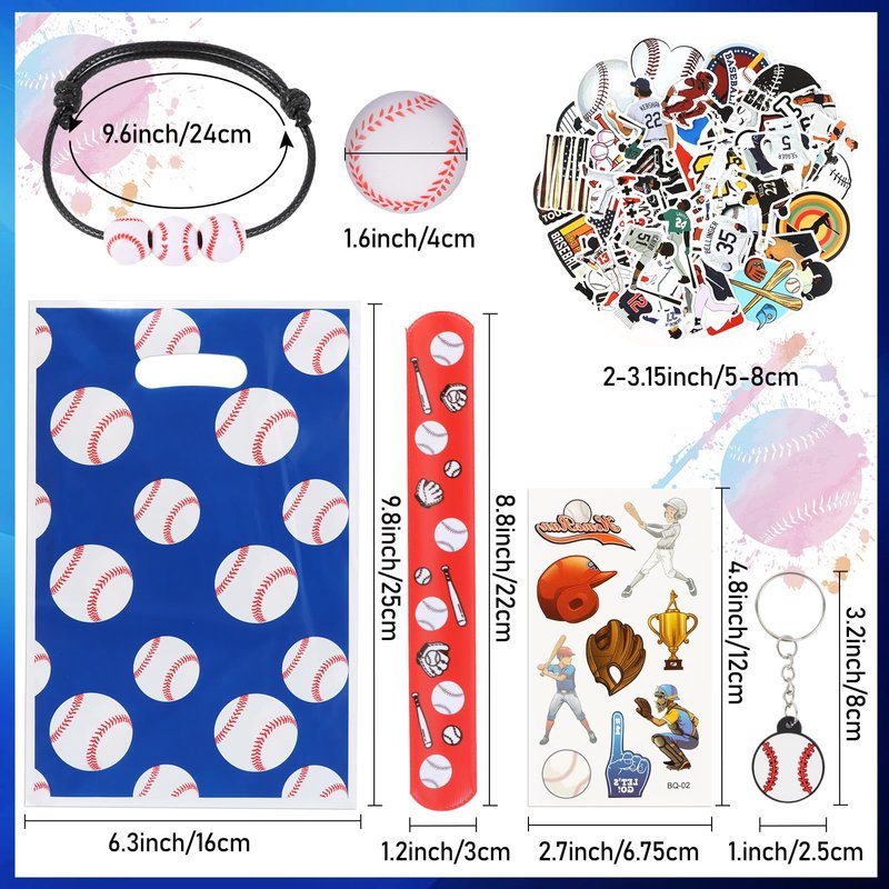 295 Pieces Baseball Party Favors Supplies Set Bulk Mini Baseballs Slap Bracelet Tattoo Sticker Keychain Adjustable Bracelet Goodie Bag Fillers for Sports Baseball Party Gifts Bags (Baseball)