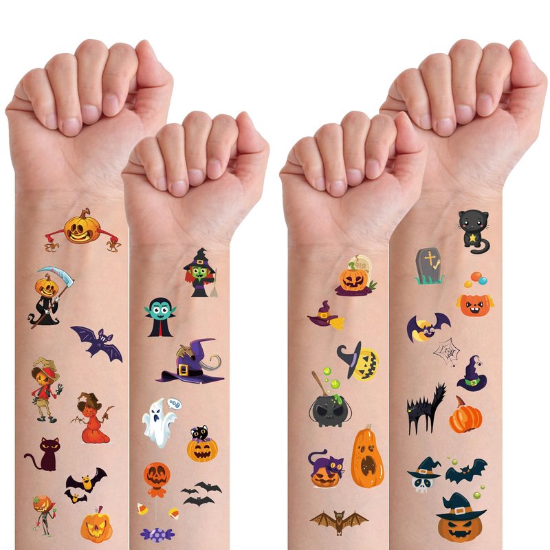 - Halloween Value Sticker Set:We include 298 pieces kids Halloween tattoos!These adorable elements of our fake tattoos include pumpkins, ghosts, cobwebs, zombies, skulls, candy, witches, and other kid-friendly motifs!