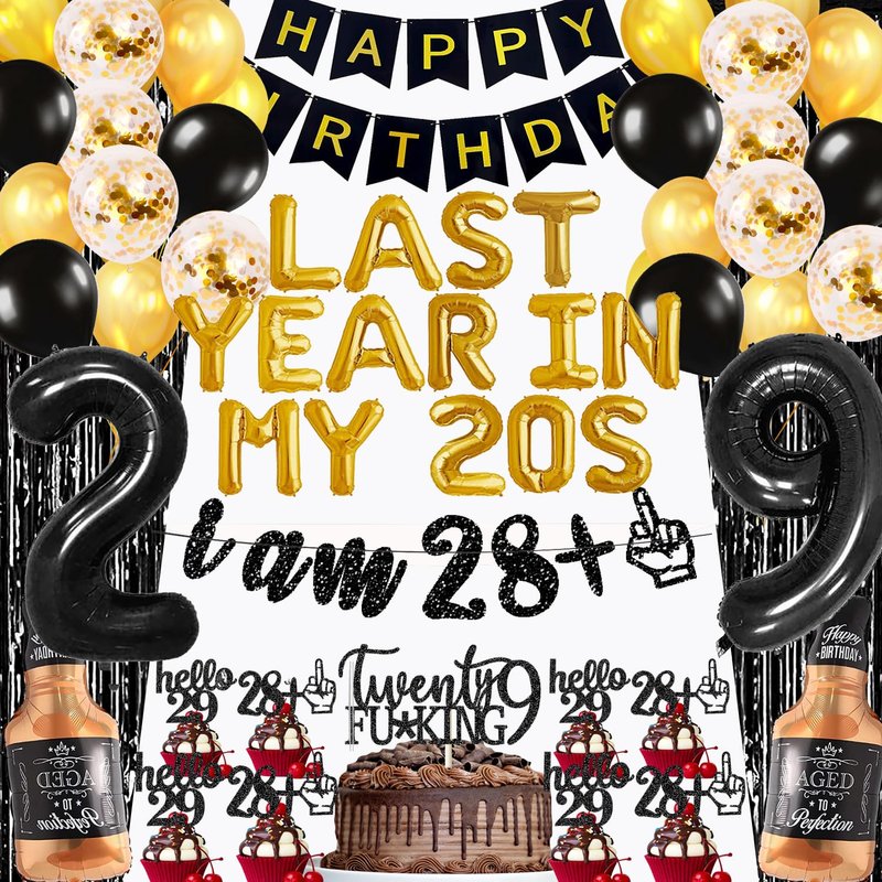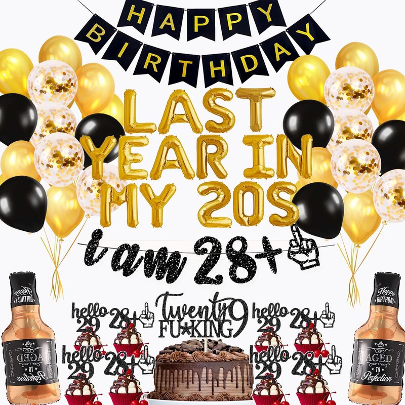 29th Birthday Decorations Party Supplies for Men Last Year in My 20s Balloons I AM 28+1 Glitter Banner 29th Birthday Foil Balloons Whiskey Balloon Cake Topper Cupcake Toppers