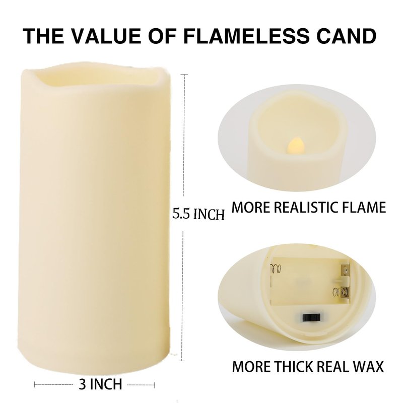 - 【Durable and energy-saving LED】Each candle requires high-quality 2 AA batteries that can last for 300 hours. If the candles powered by these batteries are not used for a long time, you can turn off the switch at the bottom of the candle to save battery life