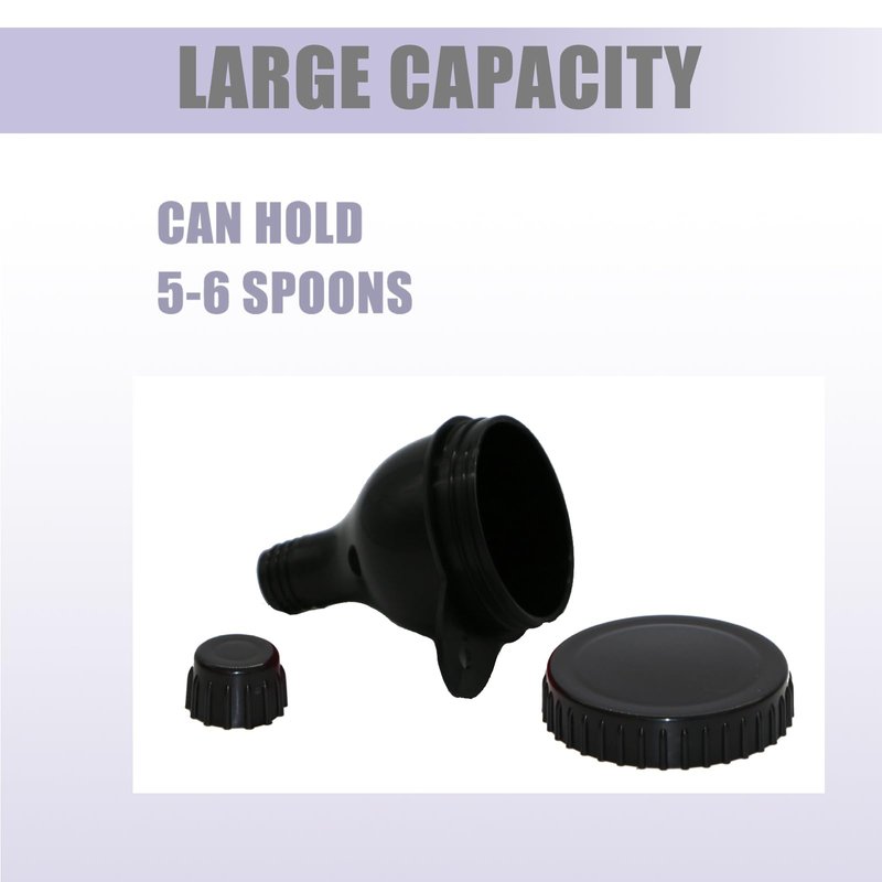 YAFIYGI water bottle funnel for powder is perfect for storing powders and tablets together. The supplement funnel can store a wide range of supplements from BCAA to creatine in a 120ml capacity with a maximum of 3-5 scoops.