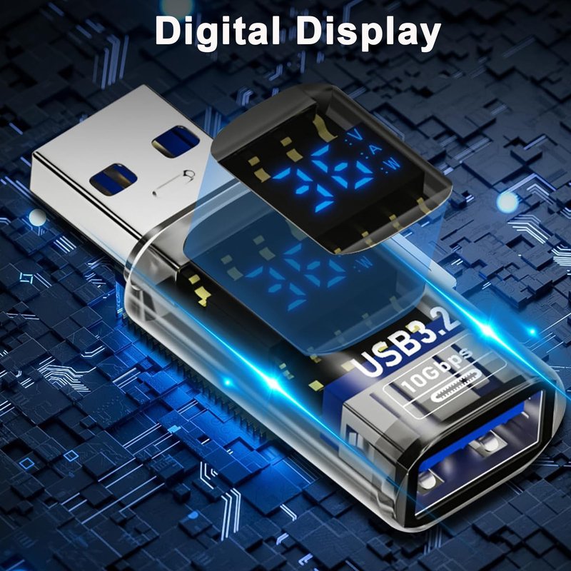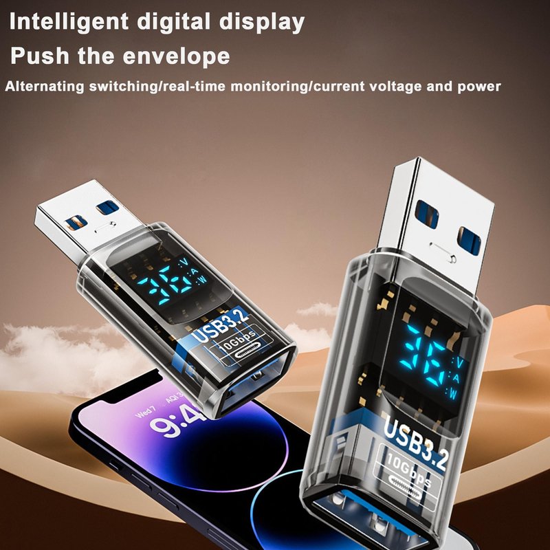 - 1.USB expansion adapter with digital display: USB 3.2A revolution expansion is equipped with LED smart display, which can display current, voltage and power supply in real time