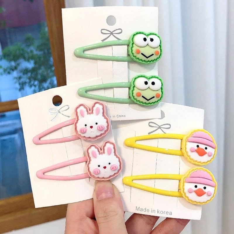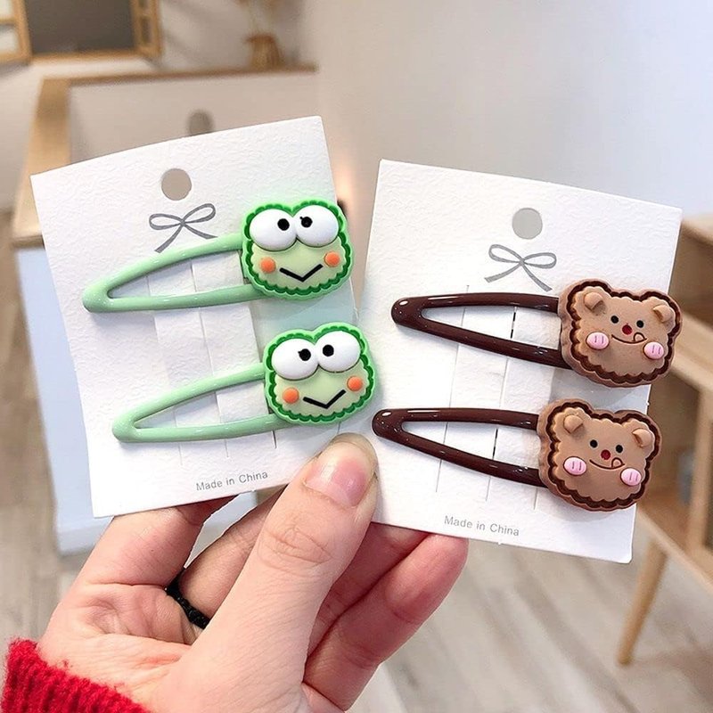 2Pc Green Geometric Trendy Frog Headwear Women Hair Clips,Duckbill Side Clips,Korean Barrettes,BB Hairpins,Hair Clips,Hair Accessories