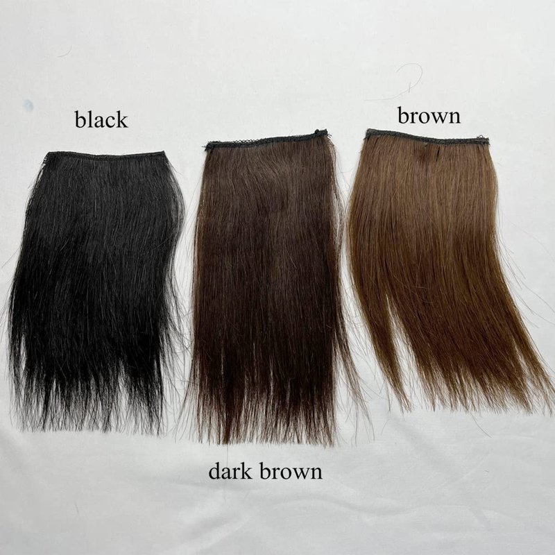 - Color: Brown Color (Please check out the video.); Texture: Straight; Design: 2pcs Clips; Length: 15cm (about 6") ; Net Weight: 25g (±5g); Material: 100% Human Hair