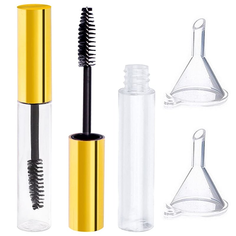 Specification:Capacity: 10 ml Color: Clear, Gold Material: PETG, clear and durable Features: 1. No worry about broken glass, you can use them over and over again.2. Empty Mascara Tube is made from high-quality plastic, both light and safe.3. Make you have big and charming eyes, increase your self-confidence on any occasion.