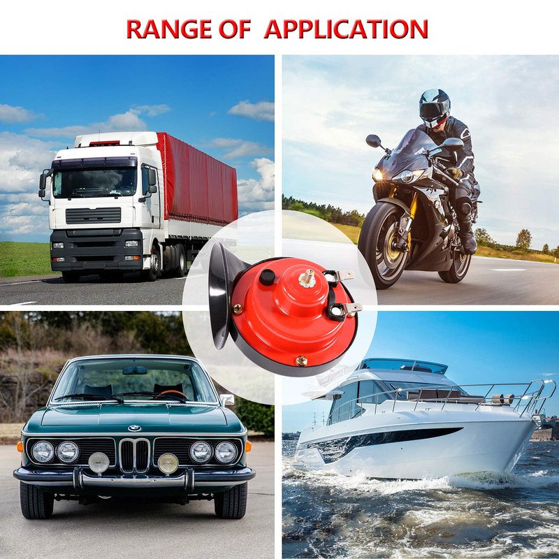 - Wide Compatibility -- Train horn suits for all kind of motorcycle, ATVs, go-karts, trucks and 12V power supplies; Don't worry about the horn not adapting at all. And our horns are also compatible with SUVs, passenger cars, ships and motorcycles.
