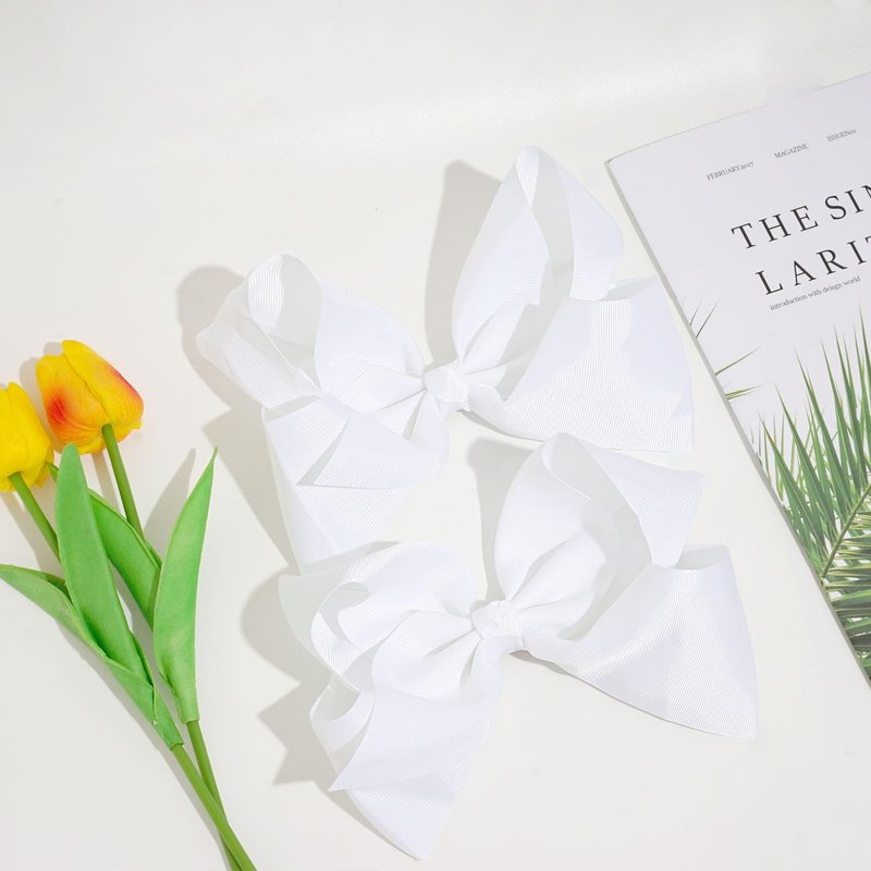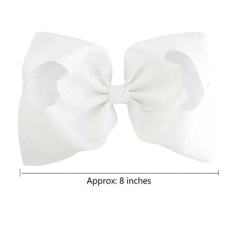 2PCS 8" Big Hair Bows for Girls Alligator Clips Grosgrain Ribbon Hair Accessories for Little Teen Toddler Girls Kids (White)