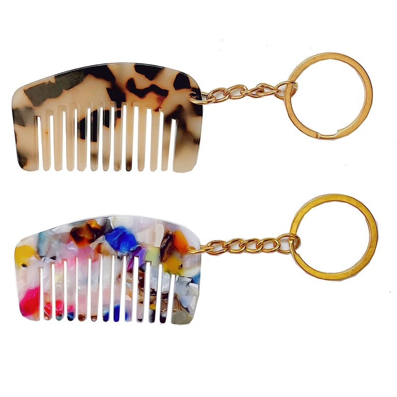 2Pcs Acetate Mini Comb Keychains Cute Fashion Pendant Anti-static Travel Portable Pocket Comb with Key Ring for Women, 2 Color