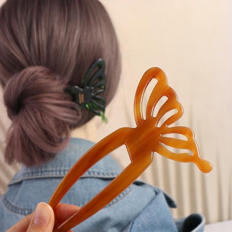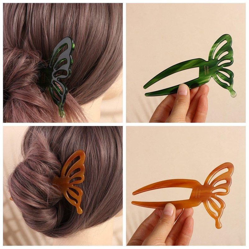 - Material: The butterfly U-shaped hair clip is made of high-quality plastic and is durable. With its unique design and impeccable craftsmanship, your bun becomes magnificent and suitable for any hairstyle.