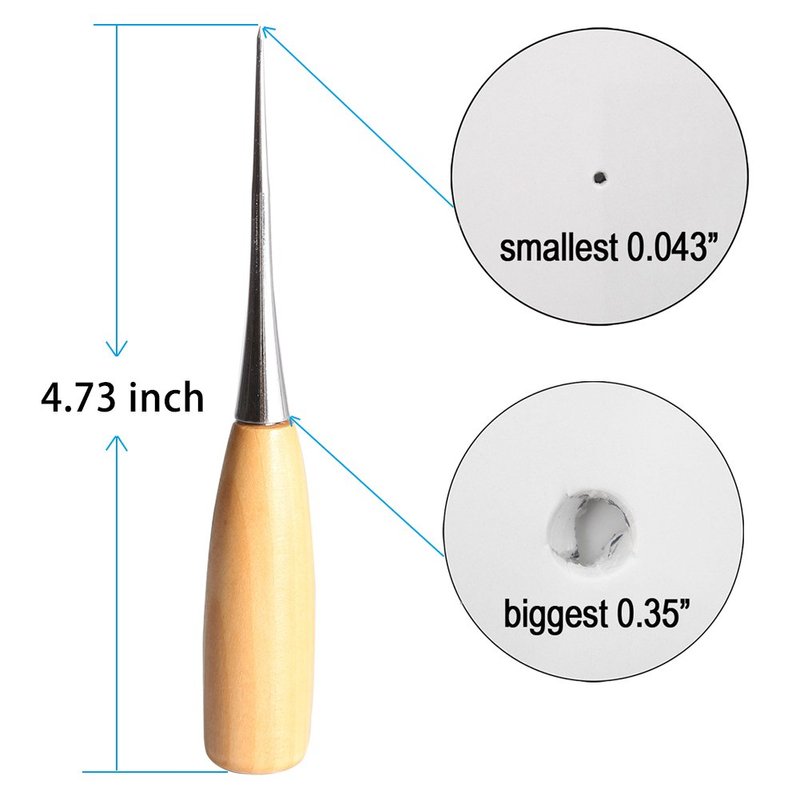 - Taper shape design allows you to poke a hole and then gradually enlarge it as the item slides up the awl