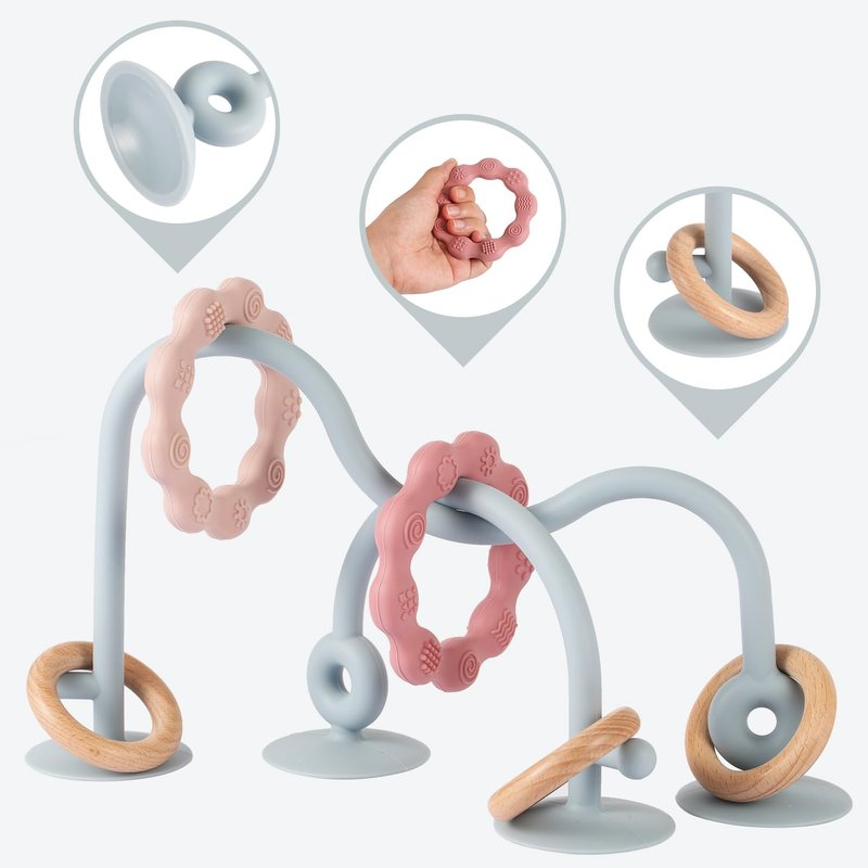 - Product Content: You will receive 2 pieces of baby high chair suction cup toys, there are one large suction cup, one small suction cup, three wooden rings and two silicone rings.