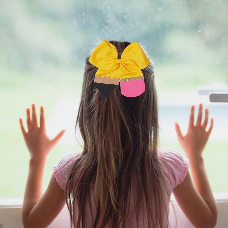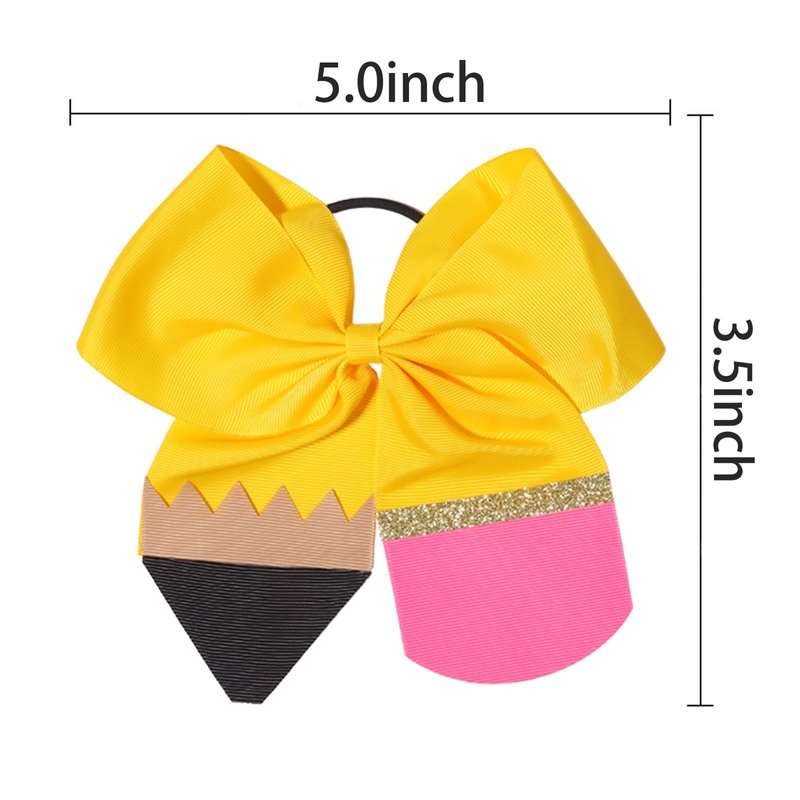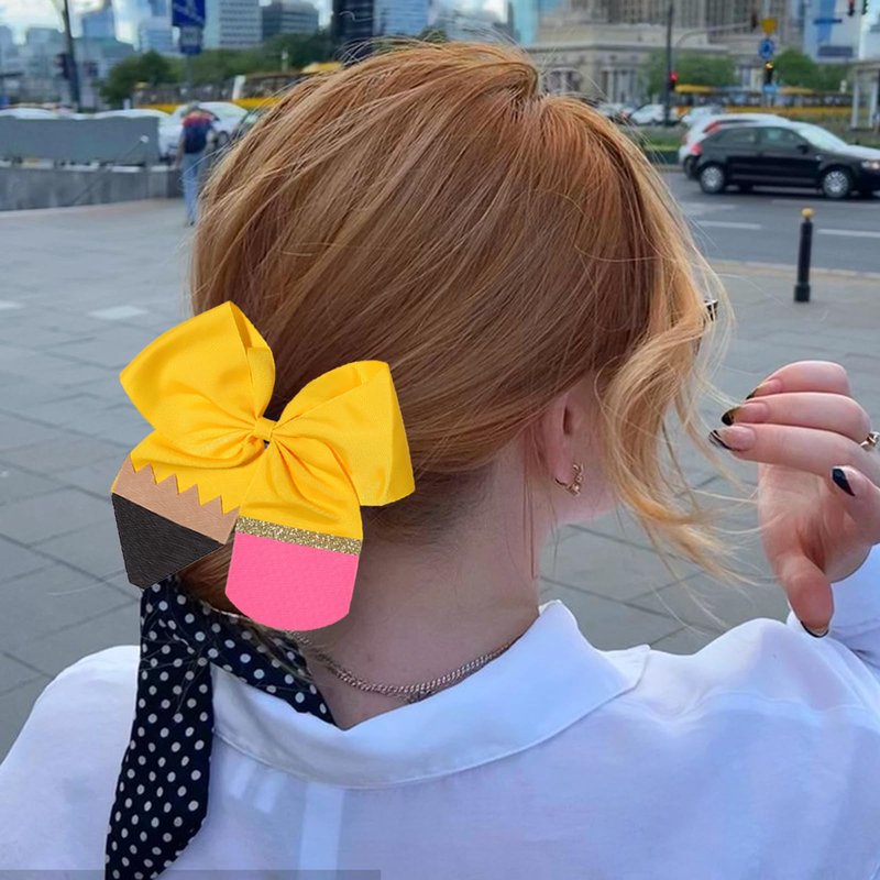 The back to school theme of the girl's hair ties are mainly yellow, unique pencil element and cute bow make a perfect decoration match,they are light and elegant, whether students or working women could easy to pull off.