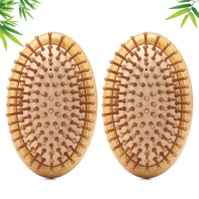2pcs Bamboo Brush for Hair Growth No Handle Design Bamboo Hairbrush Natural Scalp Brush Mini Anti-Static Air Cushion Massage Comb for Women Men & Kids
