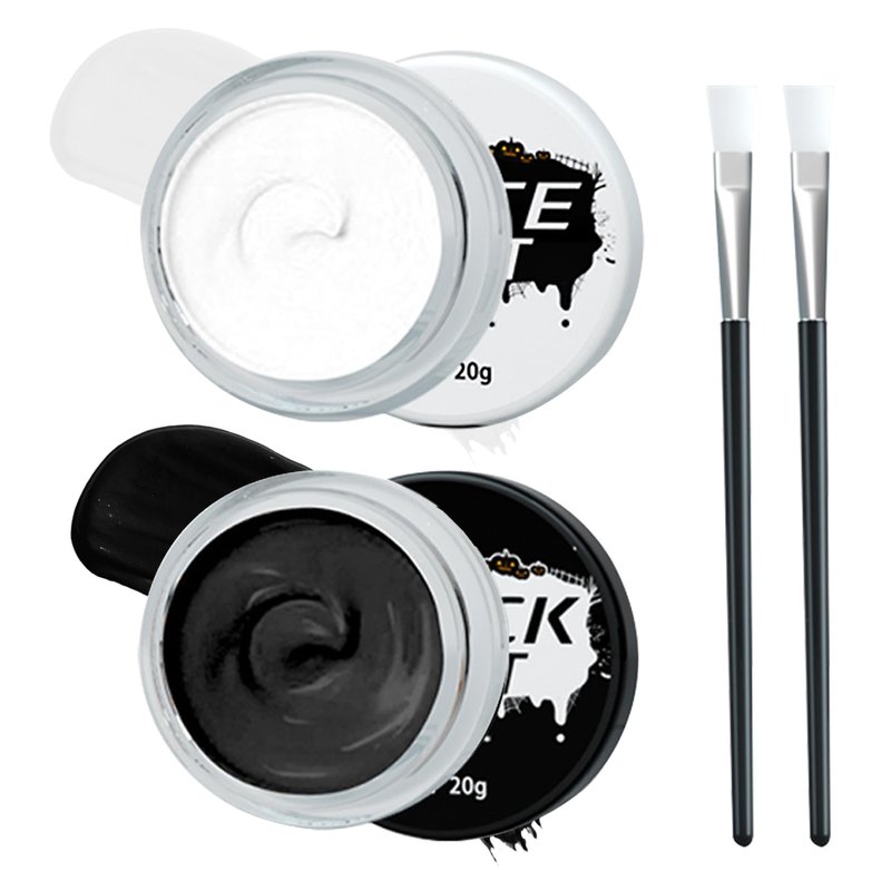 2PCS Black and White Face Body Paint,Skeleton Skull Face Painting Special Effects Makeup Kit with 2 Brushes,Clown Zombie Party Cosplay Art Theater Cosplay Halloween Face Paint Makeup Kit for Adults