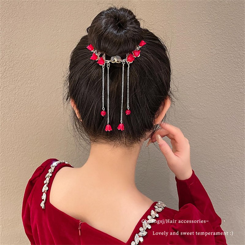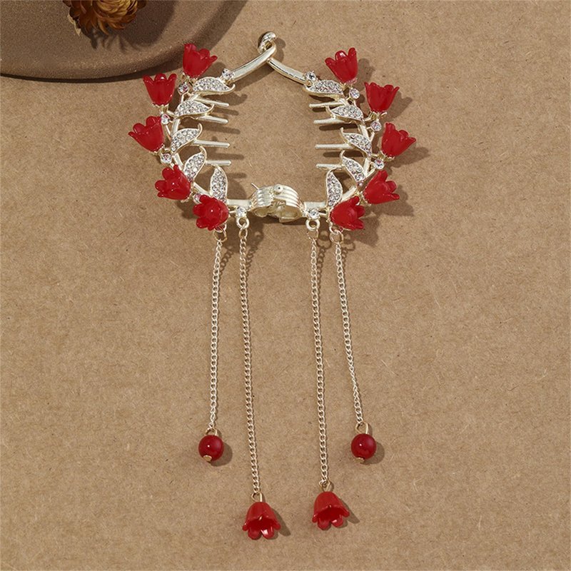 2PCS Butterfly Flower Ponytail Hair Accessories Hair Claws Clip Tassels French Style Hair Barrette Non Slip Jaw Banana for Women 041-2PCS#03