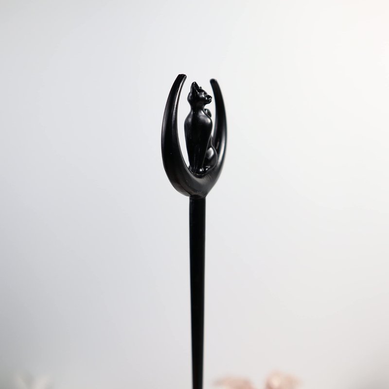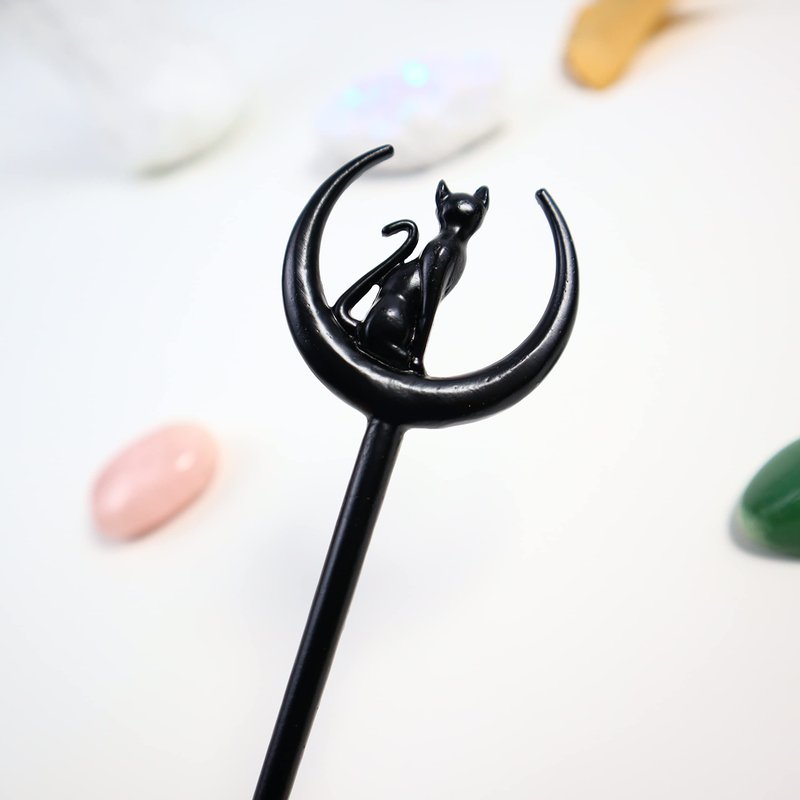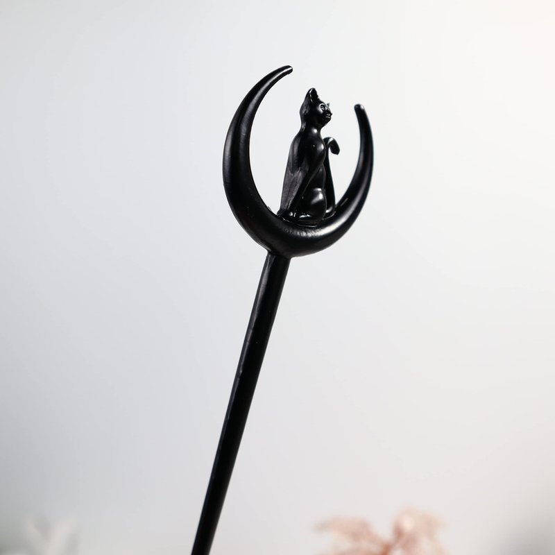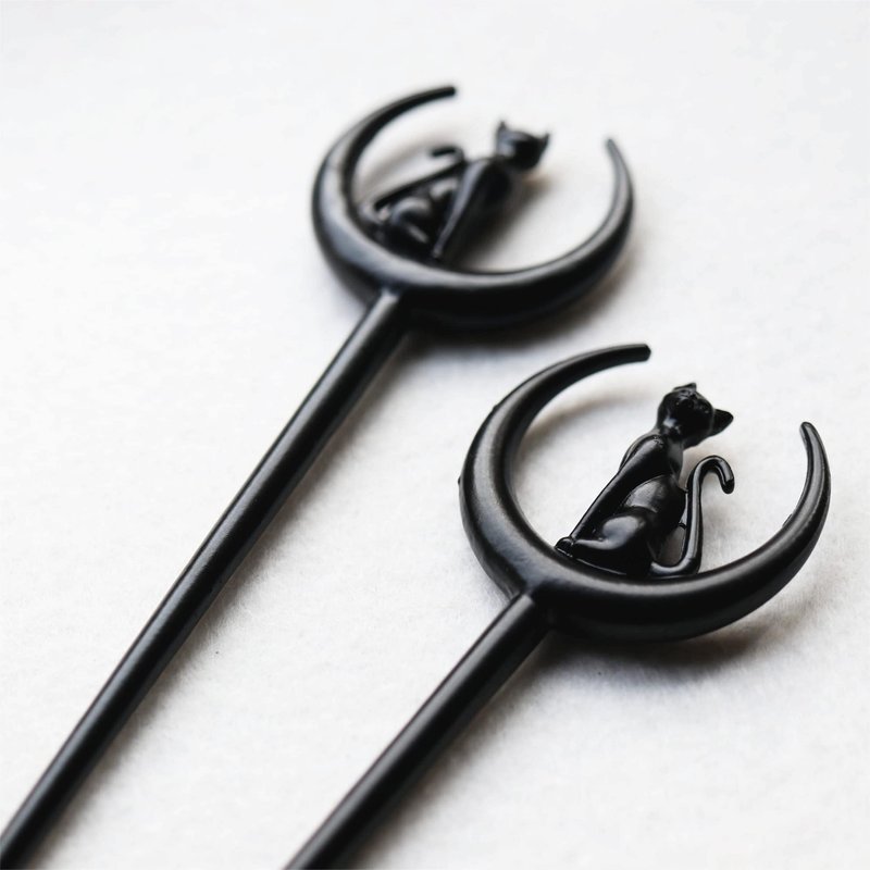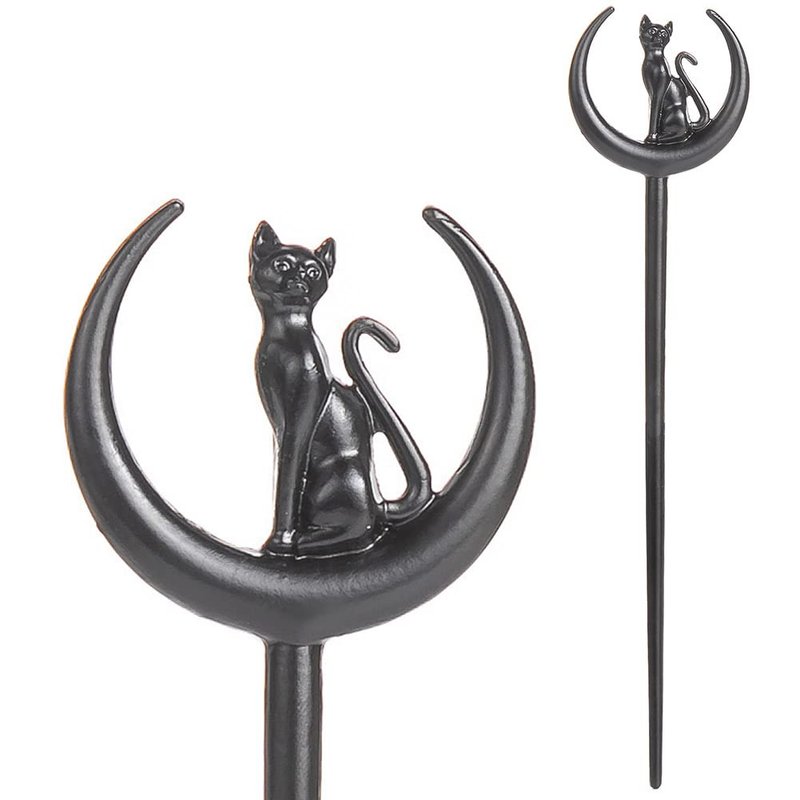 2pcs Cat Moon Hair Styling Pins Black Wicca Witch Hair Slide Renaissance Festival Hair Acceossories for Women Hair Stick