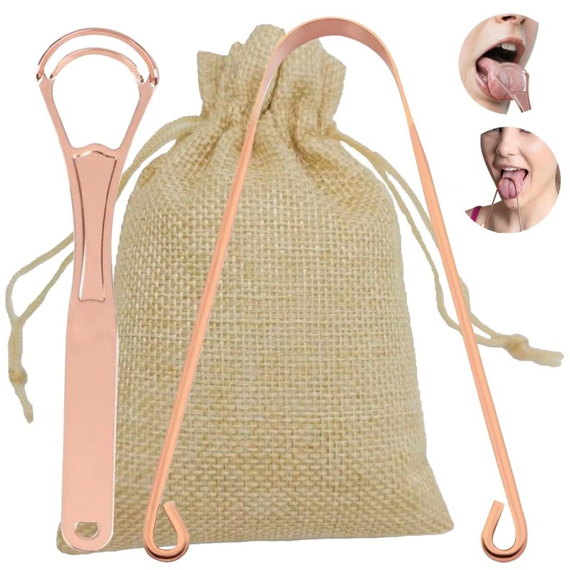 - 【Metal Tongue Scraper Set】‒come with Pure Copper Tongue scraper and Stainless steel Tongue Cleaner Suitable for adult and child to meet different usage habits for removing Bad Breath. Reusable Tongue Crapper is crafted of the finest medical-grade material, rust-proof, extremely durable and long-lasting to keep oral health and bring you a better taste and fresher breath.