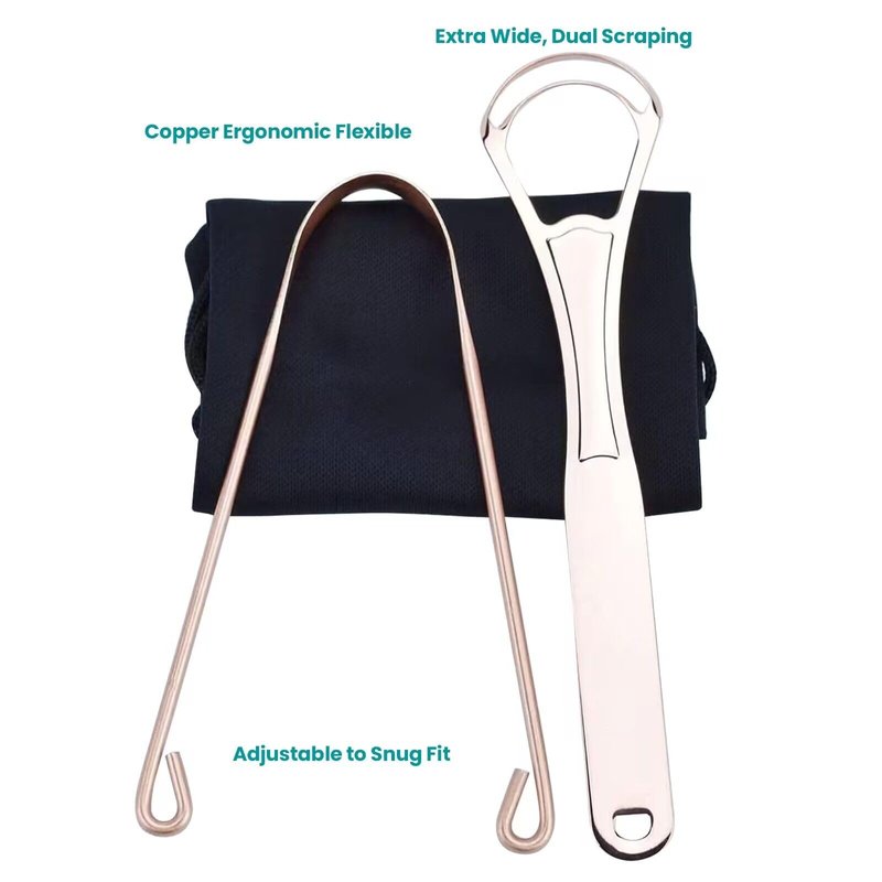 - 【U Shaped Copper Tongue Cleaner】‒Ergonomic design U shaped curve is flexible enough to twist and turn, scraping all the corners of your tongue It has two non-synthetic handles for good grip and an anti-gagging ridge for back-of-the-mouth cleaning. Cooper tongue brush is operated with two hands, and can be adjusted according to your mouth shape and usage habits to quickly clean your tongue and leave you with a breath of fresh