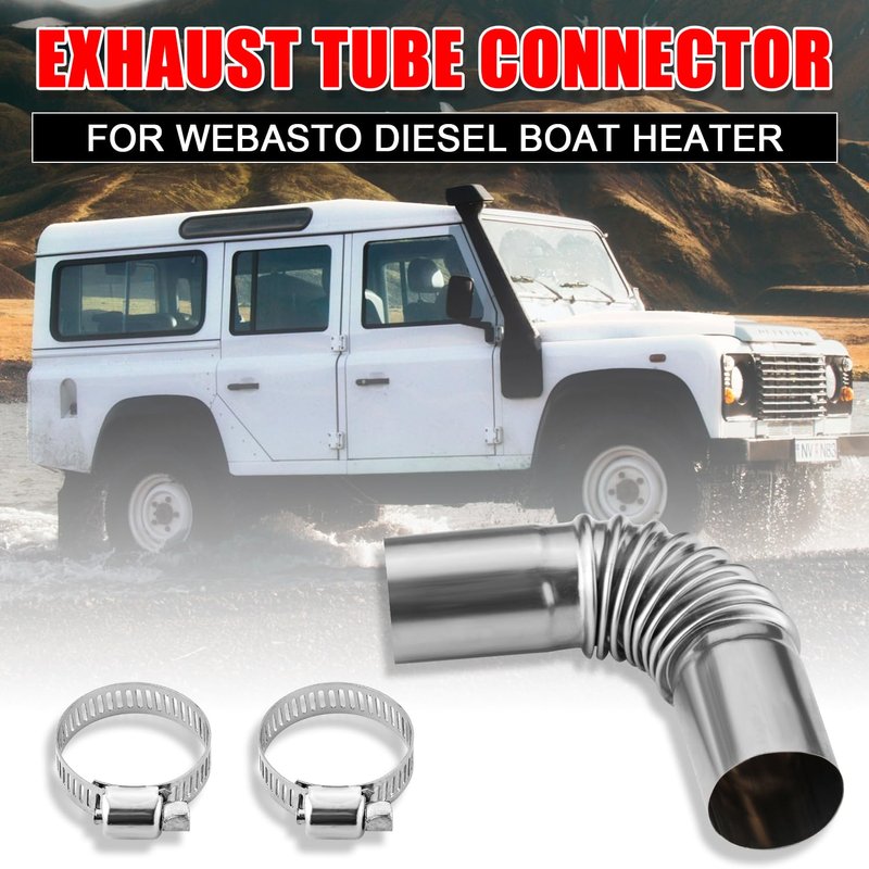 2pcs Diesel Heater Exhaust Pipe, Stainless Steel 24mm Parking Air Heater Exhaust Pipe Tube Elbow Connector with 4 Clamps for Webasto Eberspacher Diesel Boat Heater 13cm Exhaust Pipes and Tips