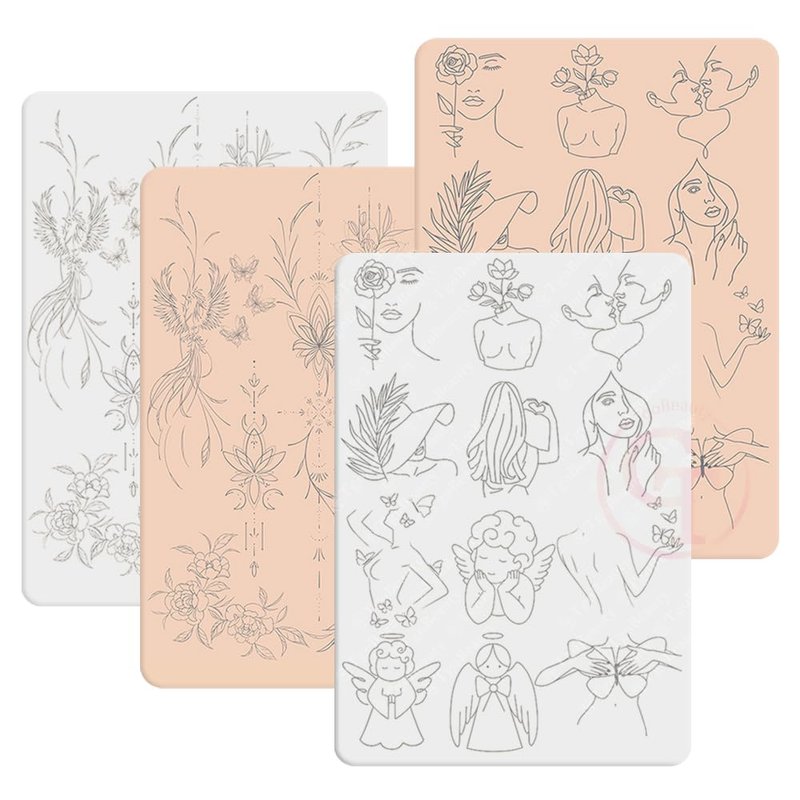 The White skin with light gray outline. fine line tattoo practice pad for training to improve the tattoo skills.