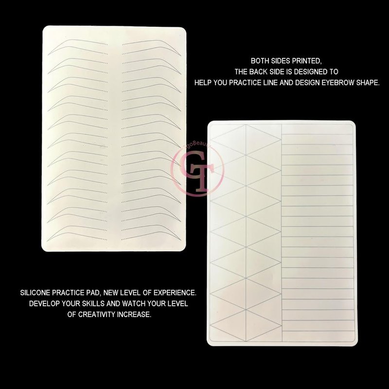 - Double-Sided Designs: the microblading practice skins are with double-sided design. For the eyebrow skins, one side is with 11 pairs brow shapes. Another side is with the geometry shape. For the lip skin, one side is with 5pairs different lip shapes and the back side is with the the geometry shape.