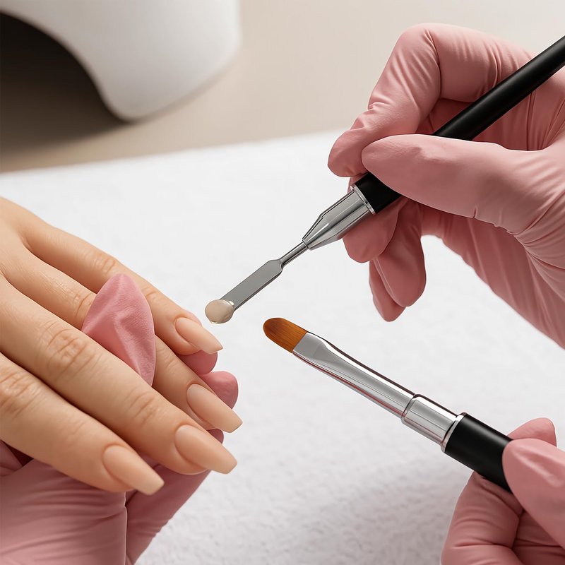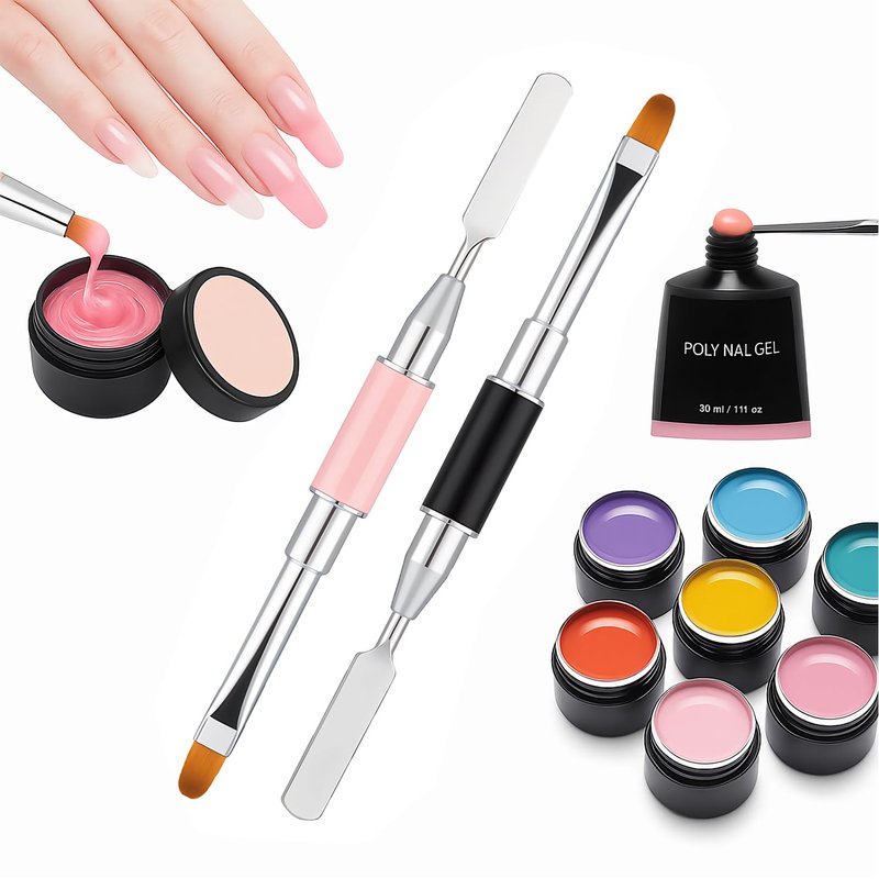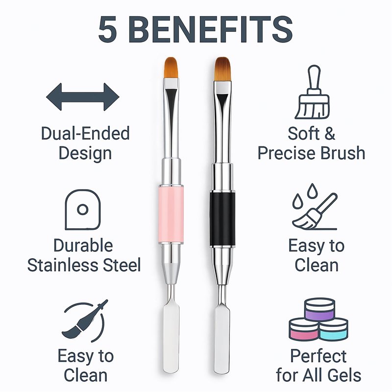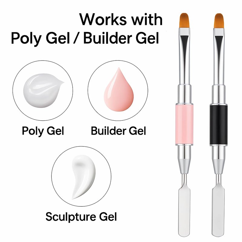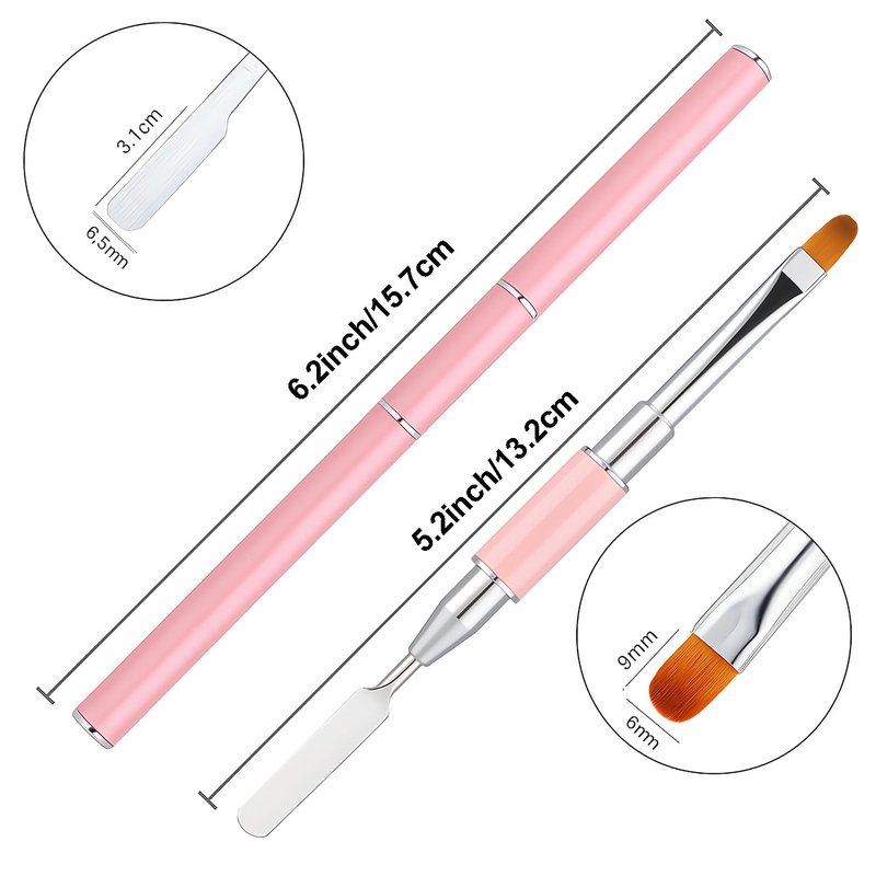 2Pcs Dual-Ended Nail Art Brush and Spatula Set - Pink & Black UV Gel Nail Tools for Poly Extension, Sculpture Gel - Manicure Design Kit for Salon & DIY Use