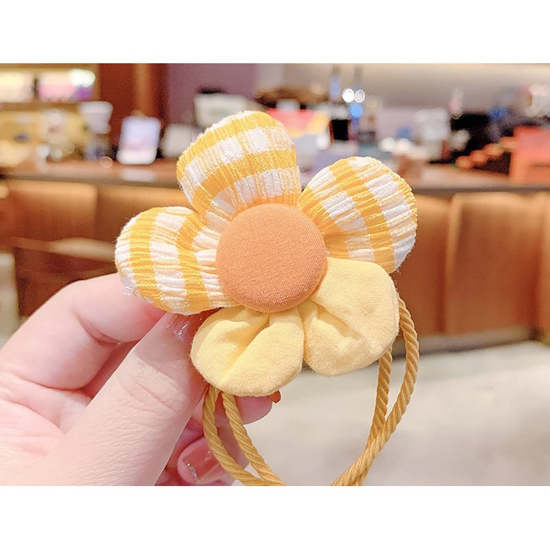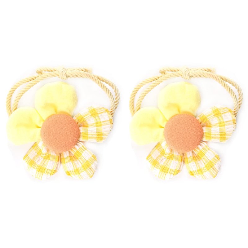 2PCS Fabric Flower Ropes Hair Band Ties Ponytail Holders Soft Elastic Bands with Flowers Accessories for Children Girls and Ladies (Yellow)