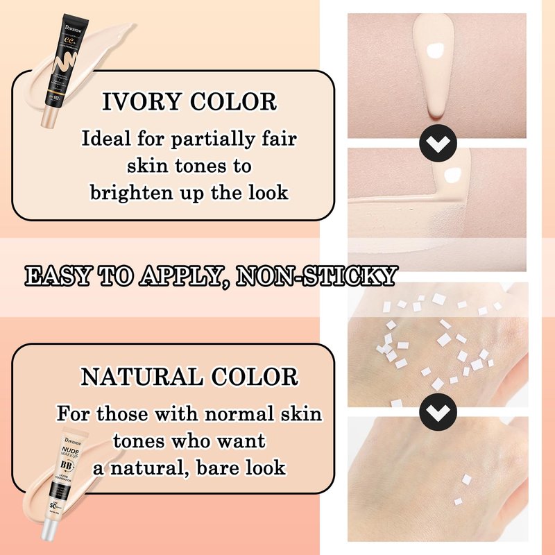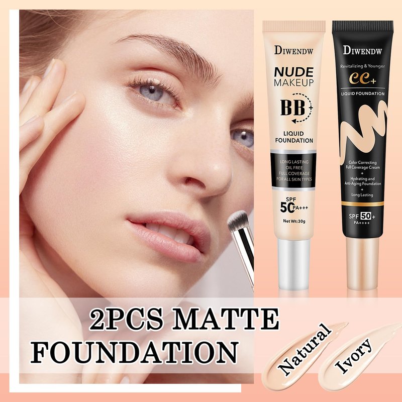 - ★【Foundation Makeup Set】Full coverage makeup foundation set contains two available colors: natural and ivory, which can be used to meet most skin types and skin tones, and it delivers exquisite makeup and excellent sun protection, so that you can easily blossom your charm in various occasions.