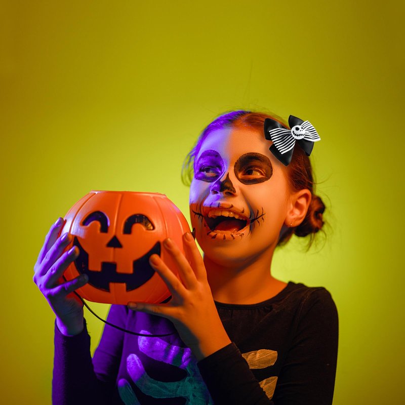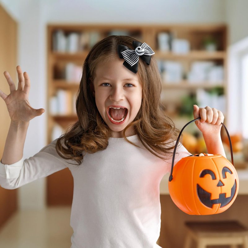 - Halloween hairpin: Made of high-quality and soft ribbon. Classic black and white striped bow with a skull embellishment, exquisite and durable.