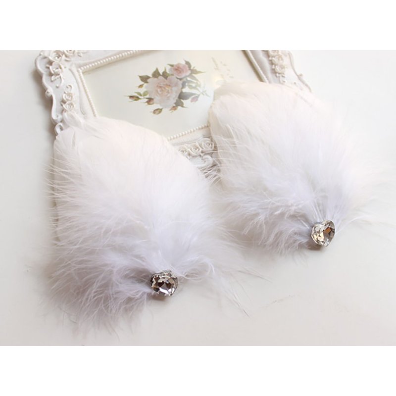 2PCS Girls Heart-shaped Feather Hair Clip Headpiece Party Hairpins Hair Barrettes Hair Accessory Bridal Wedding Feather Fascinator (White)